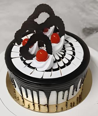 Decadent layers of fluffy chocolate cake and fresh whipped cream, crowned with elegant chocolate curls and hand-picked cherries. Perfectly finished with a glossy chocolate glaze for a premium gourmet experience.